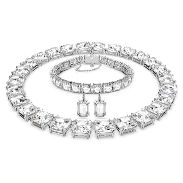 邂逅您的 Millenia 系列衣橱经典新品。套装内含一副耳环、一条 all-round 束颈项链和配套手链,闪闪发亮的混合切割宝石装点镀铑镶嵌,优雅时尚。叠戴或者单独佩戴,百搭。
